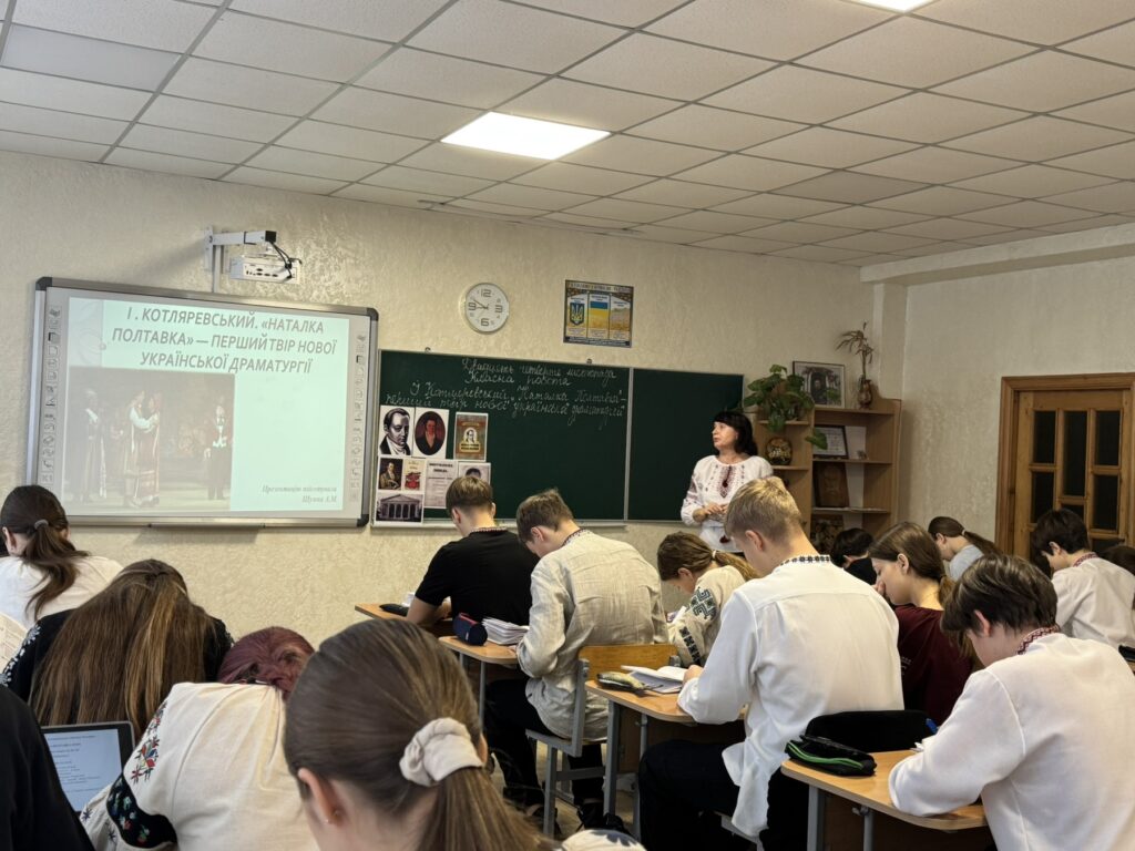 Показовий урок-театр у 9-А класі!24.11.2025 р. в 9-А класі відбувся показовий урок з української літератури за твором Івана Котляревського «Наталка Полтавка» — першим твором нової української драматургії.Формат уроку-театру допоміг ліцеїстам по-новому відчути класику та зануритися в атмосферу благодійного фестивалю дитячої творчості «Говорить Україна — живе театр».