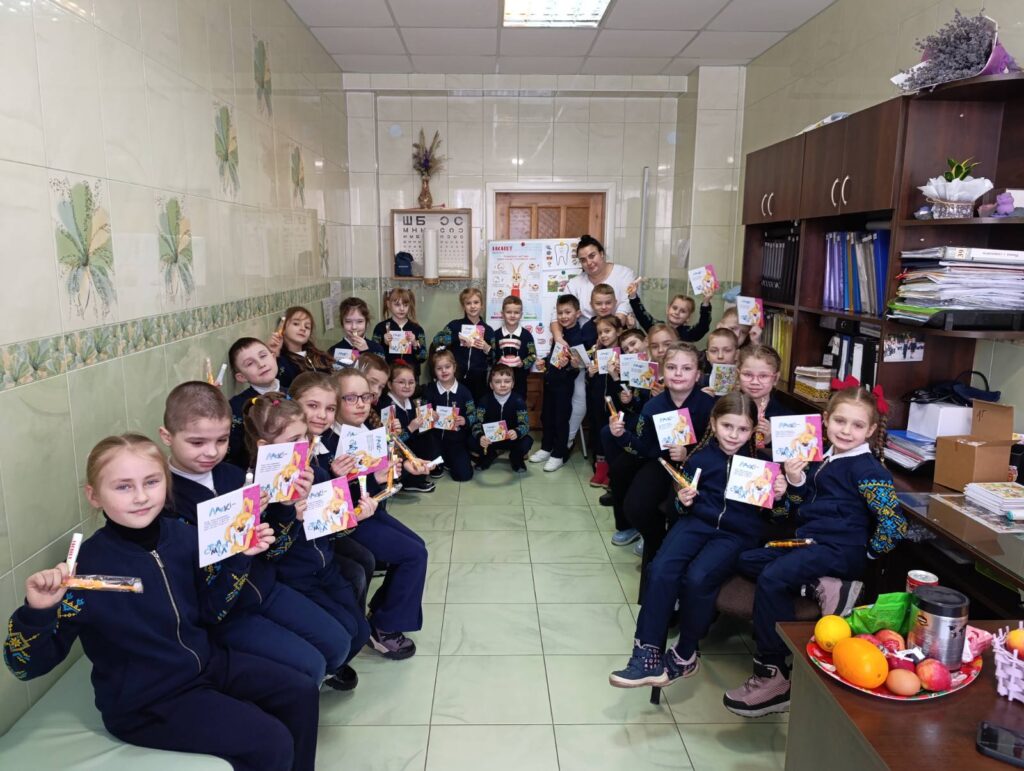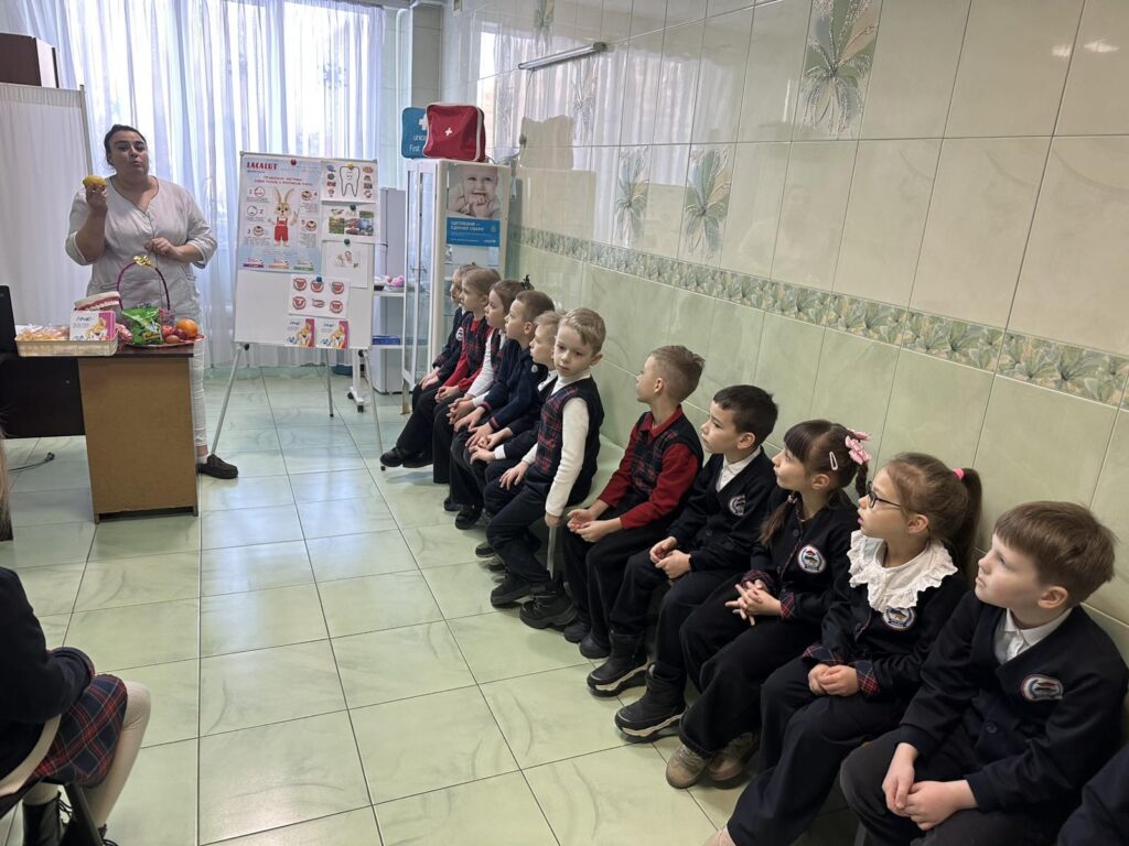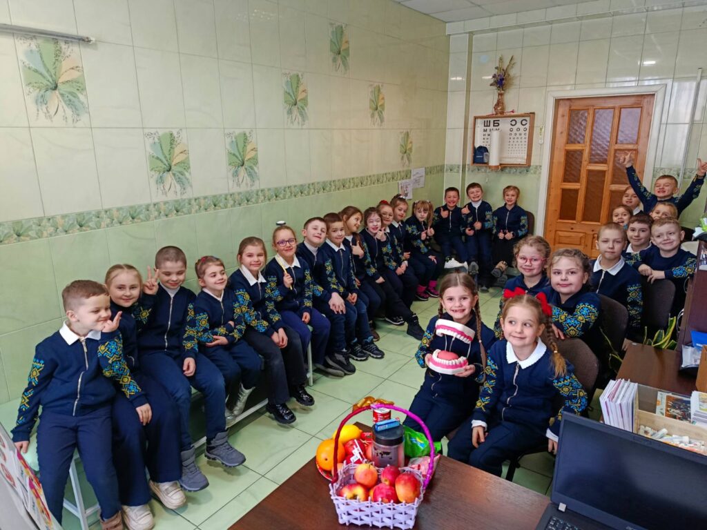 У межах Тижня першокласників «У світі професій» наші наймолодші учні відкривали для себе професію медика. Під час зустрічі в медпункті медична сестра Лабунець Інна Дмитрівна розповіла дітям про правильний догляд за зубами, корисні та шкідливі продукти, важливість регулярної заміни зубної щітки. Першокласники спробували себе в ролі маленьких стоматологів, закріпили знання у грі «Корисно – шкідливо», а на завершення отримали корисні подарунки — зубні щіточки та пасту, які обов’язково використовуватимуть щодня. Здорові зуби — запорука гарного самопочуття та міцного здоров’я.