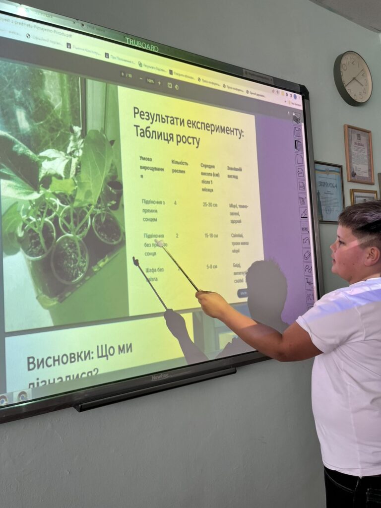 Науковий десант «Магія життя»: Учні захищали власні дослідження про проростання насіння. Результати експериментів вразили: діти спостерігали, як різні фактори впливають на розвиток життя, вчилися терпінню та відповідальності за живі організми.